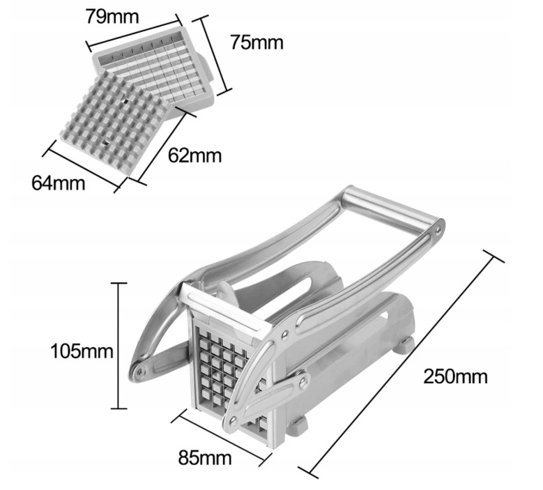 • Lihtne kasutada – aseta kartul lõikurisse ja tõmba käepidet, et saada hetkega ühtlased friikartulid.
