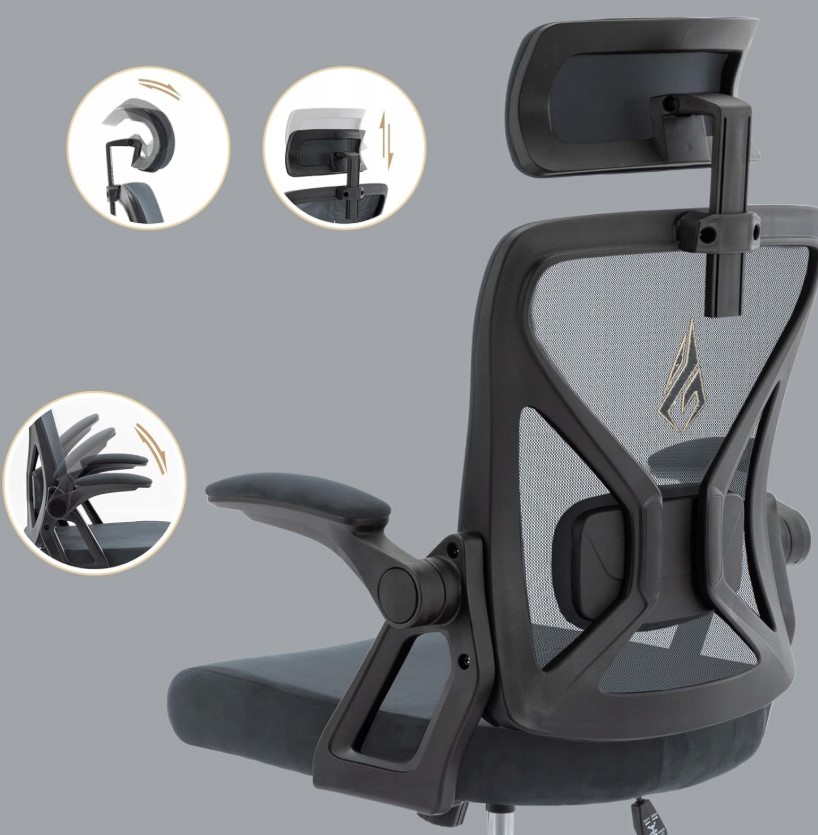 - Funktsioonid: S‑kujuline seljatugi, reguleeritav peatugi (11 cm), nimmetugi, pöörlev mehhanism, reguleeritavad käetoed, jalatugi