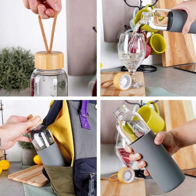 Iga Klaasist Joogipudel on varustatud kvaliteetse silikoonist tihendiga, mis välistab lekked ka kotis või seljakotis. Sobib suurepäraselt vee, mahla, smuuti, limonaadi või isegi kuumade jookide jaoks.