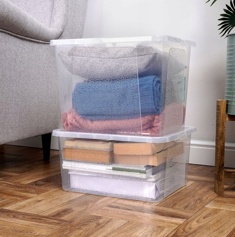 Kaste saab mugavalt üksteise peale laduda, mis aitab säästa ruumi ja hoida kõik esemed kompaktselt koos. Ideaalne lahendus väikestesse kodudesse või suurte asjade hoiustamiseks.