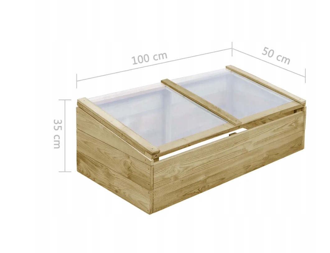 Valmistatud kvaliteetsest immutatud männipuidust, mis on vastupidav, mädanemiskindel ja talub hästi erinevaid ilmastikuolusid. • PVC‑kattega katus tagab taimedele sooja ja kaitstud kasvukeskkonna ka jahedamatel päevadel. • Avatav katuseosa muudab kastmise ja taimede hooldamise mugavaks. • Lihtne paigaldus – sobib ka algajale aednikule. • Loomulik materjal võib sisaldada väikseid ebatasasusi, mis annavad igale eksemplarile kordumatu iseloomu.